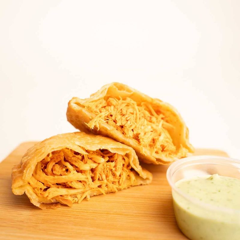 Crujientes por fuera, jugosos por dentro—los pastelistos fritos rellenos de pollo son el alma de cualquier merienda con sabor latino. Están hechos con masa suave de harina de trigo, rellenos con pollo desmechado previamente sazonado y salteado con ají dulce, cebolla y especias que evocan el calor de cocina casera. Al freírse, la masa se torna dorada y crujiente, mientras el relleno ofrece una explosión de sabor cálido y reconfortante.