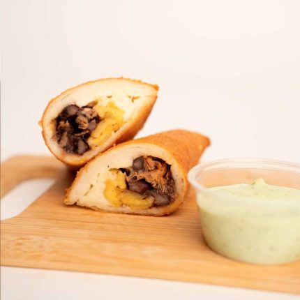 Nuestra masa, de alta hidratación y fermentación prolongada, logra una textura increíblemente suave por dentro y ligeramente crujiente por fuera. Cada bomba se fríe en su punto perfecto y luego se rellena con deliciosos sabores.